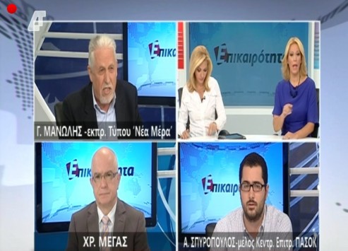 Καλεσμένος στη Δημόσια Τηλεόραση, με το που είδε ότι παρών ήταν και ο πρώην βουλευτής της Νέας Δημοκρατίας και νυν Εκπρόσωπος Τύπου της Νέας ΜΕΡΑς Γιάννης Μανώλης, αποχώρησε αμέσως!...